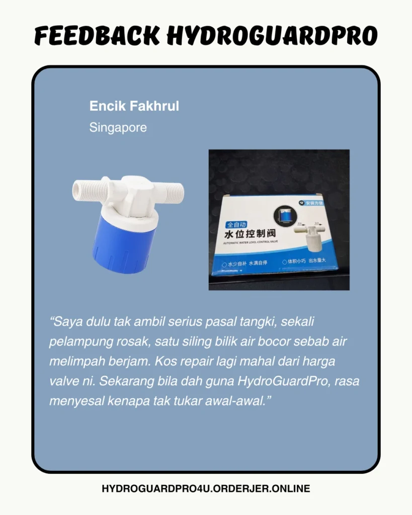 🎯 Klik ‘Order Sekarang’ sebelum harga promosi tamat. Jangan tunggu sampai tangki air terus melimpah, bil air melambung ratusan dollar & pelampung lama rosak berkali-kali baru nak menyesal…